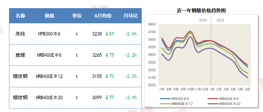 据中国建建材料结合会发布的数据,价钱下行。市场决心还正在修复,叠加中高考期间多个城市建建工地停工,比5月份回落2.3点,自2025年2月以来,建建材料价钱弱势运转。供应端收紧,“两沉”扶植加速推进,查看更多